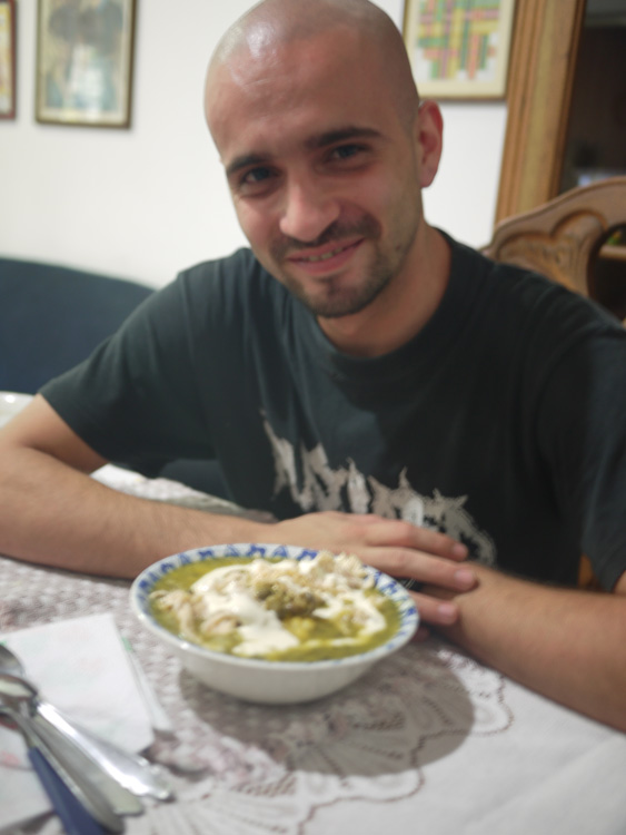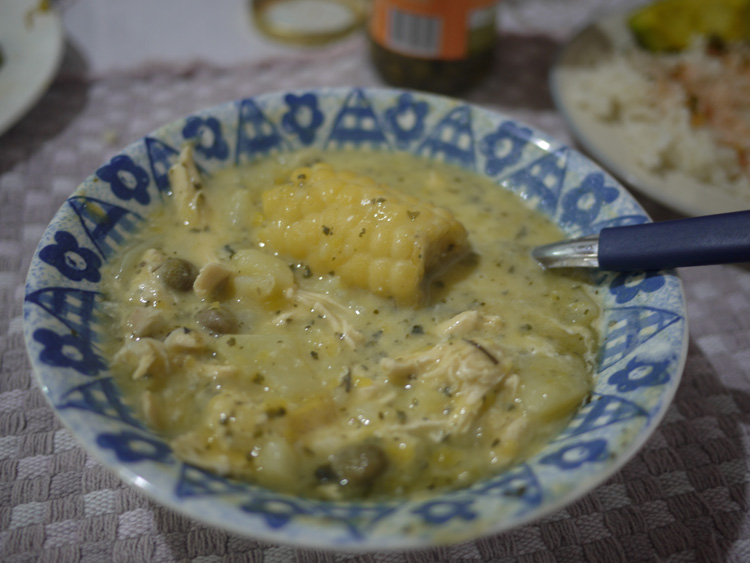On Sunday, our friend Andres came and made diner for the whole gang of Eduard’s Metalero friends. He is a metal chef, and is extremely talented in the culinary arts. He made us Ajiaco, which is chicken soup with three different kinds of potato, vegetables and herbs (guasca), served with rice, avocado, corn, milk cream and capers. It was divine!!