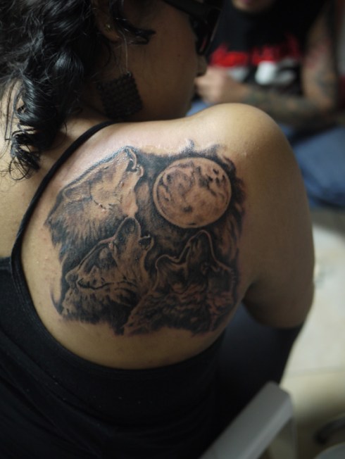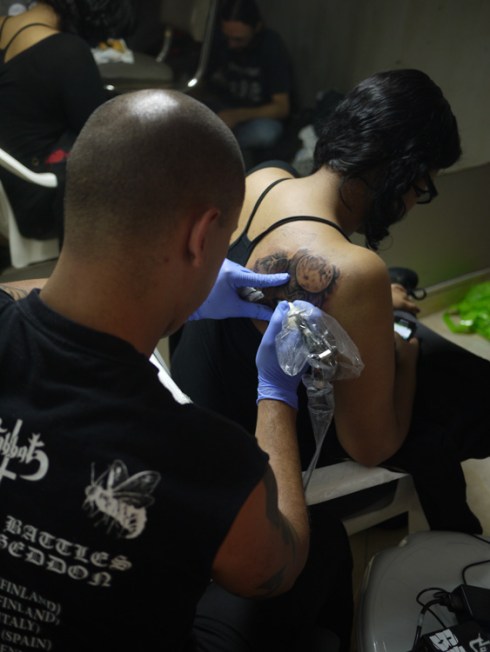 When he’s not making wonderful meals or getting loaded, Eduard makes a living doing tattoos. He is specialized in mostly dark art, and especially loves doing shading and 3d looking stuff. We went to his workshop (which happens to be located in a bike repair shop) and watched him in action: