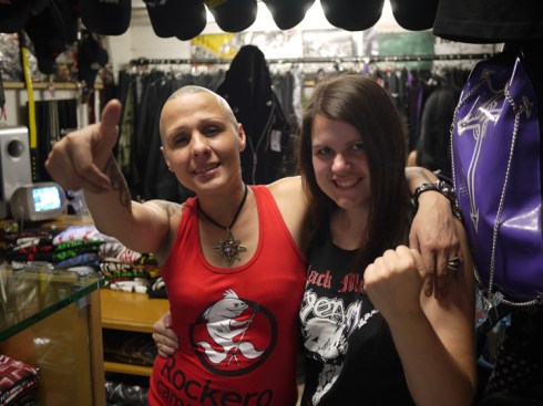 We also went to visit some record shops last week. They had used LP’s, a few CD’s and some pretty cool t-shirts. One of the shops is owned by a girl who was in the cult Colombian metal movie “Rodrigo D. No Futuro”. If you remember well, she was the one with puffy curly hair and a Sodom shirt, trying out to sing in a band. The puffy hair is gone now:
