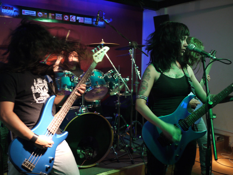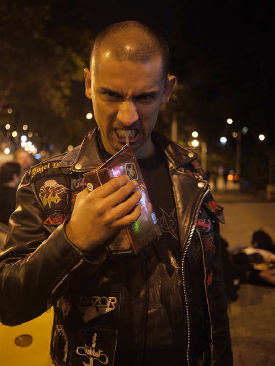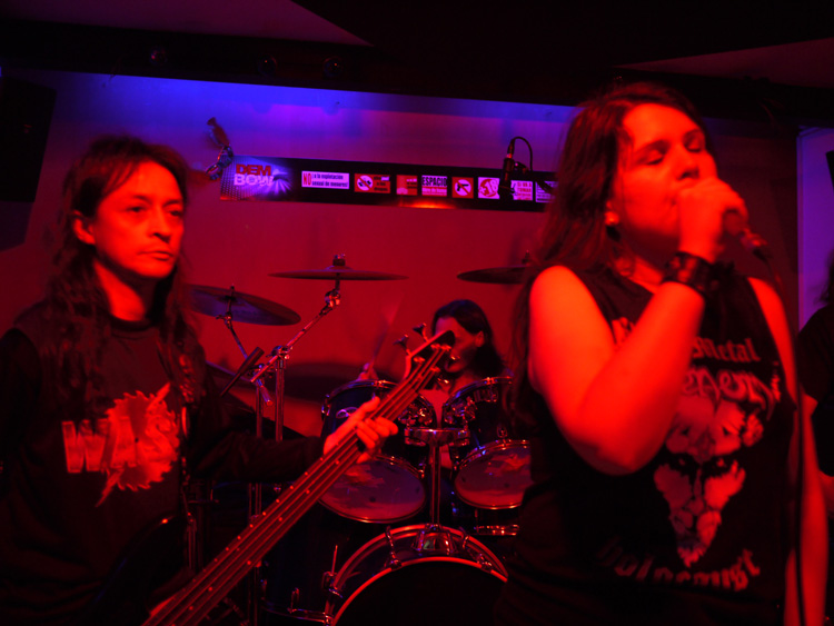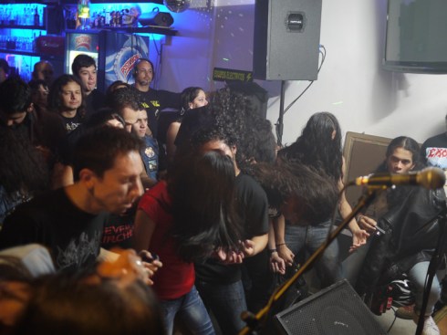 Medellin, Colombia’s metal scene is one of the most dedicated I have ever seen so far in our trip. People here live and breathe metal, and do not just settle for mp3’s. Our first experience was a trip to Villamil Ossian bar, a tiny pub which is populated by rabid metalheads. The ambiance is really good, the music is top notch (you can hear anything from Judas Priest to Anvil, Trouble and Pungent Stench) and the beer is quite cheap (something like a dollar). What’s funny about this place (and pretty much every other bar in Medellin), is that people do not actually drink inside the bar, but outside, on the sidewalk! On Friday night, it was full of people and motorbikes. Also, sometimes people would just buy bottles (and cartons??) of rum or aguardiente and get totally loaded with the rest of ’em.