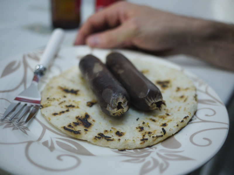 Diana also gave us an arepa with morcilla (blood sausage) – the most metal of all sausages! There is actually no meat in those sausages, only blood, spices and rice, stuffed in pig intestines. They were killer!!!!!!