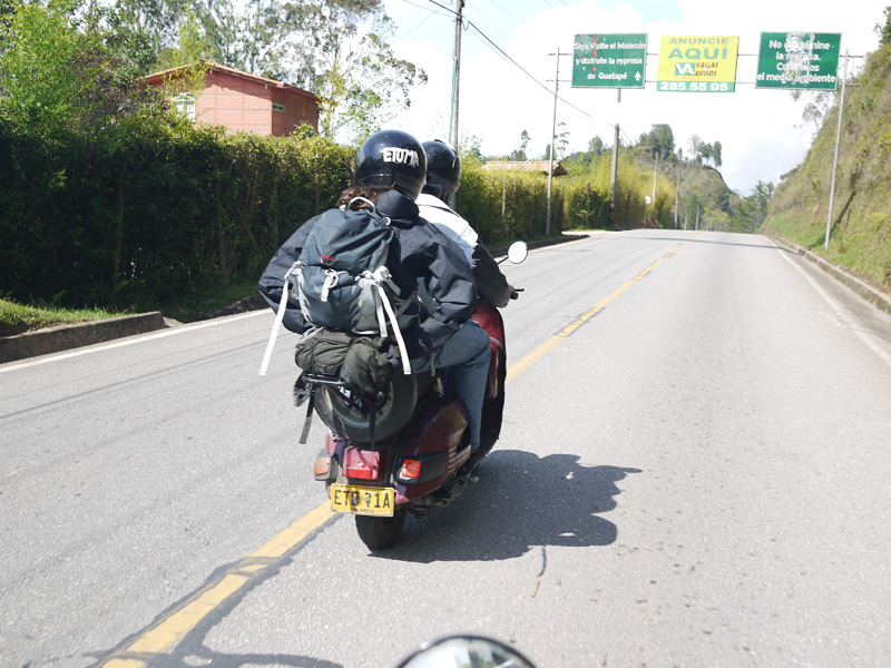 Our last day in Medellin! Tomorrow, we will be starting our trip in Bogota that will be lasting a week. We just came back from a small vacation away from our vacations to a small village called Guatapé. Located about two hours from Medellin, Guatapé is famous for its beautiful lakes and especially for “La Piedra”, a gigantic 70-million years-old rock, that is over 200 meters high. We went with our friends Ivan and Rafael, by moto/scooter: