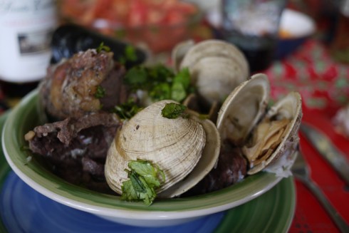 The taste was really killer; especially the broth, which was a mix of the smoke flavour of the bbq, the juices of all the meat, seafood and the white wine. The chicken, especially, was deadly as it was melting like butter… and the smoked ribs were killer as well! Like I said earlier, I am not a huge fan of seafood, but I have to admit that the black mussels were really good with all that flavour!! We learned afterwards that this special dish is called Asado al disco, or bbq with disc. It is a Chilean specialty mostly made in the South, and perhaps once a month. You cannot order that in the restaurants, it’s strictly made in the backyards of southern Chileans!