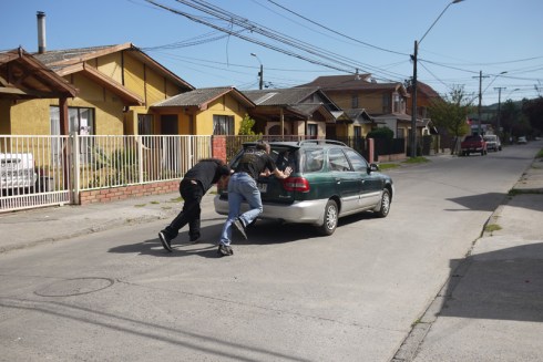 On the last day of our stay in Concepcion, Matias’ car broke down, so the guys had to push it in order to make it start or something. I don’t know. I took this funny photo to remember the moment: