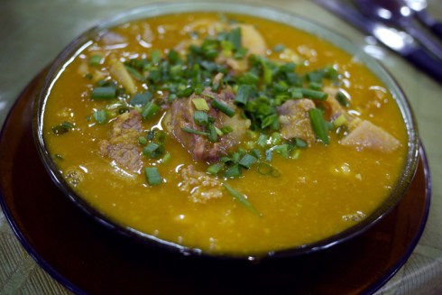 Locro – a hearty Andean soup consisting of a corn/carrot broth, a piece of osso-bucco, a piece of meat and some pieces of tripes