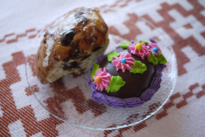 The easter egg had some candies inside... but they weren’t really good. The holy bread tasted pretty much exactly like the buns we have in Canada.