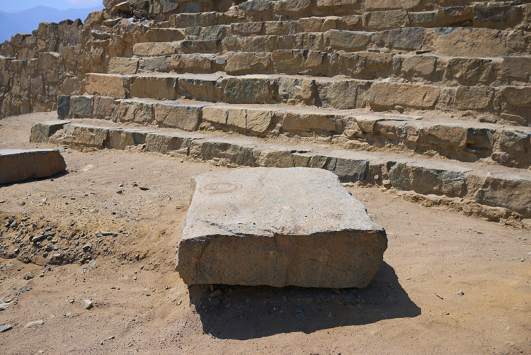 In front of this pyramid you can see a hieroglyph of a spiral carved on a stone, which inspired the new logotype of Peru. Check it out: