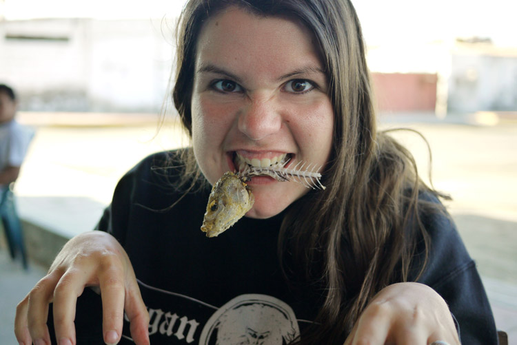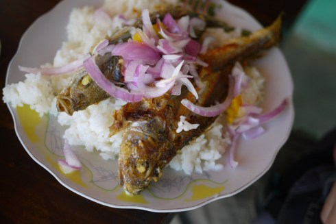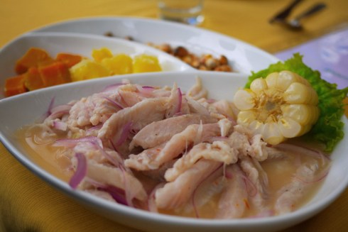 So we found an open restaurant, which only served fried fish – but caught only an hour or so ago. Julio had bought some fresh fish, which we brought to the lady cook to make some ceviche. Here’s what it looked like!