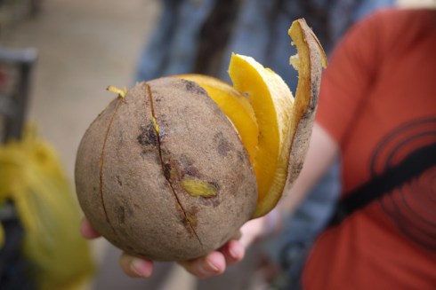 But before we arrived on the site, we encountered a fruit seller which had some strange locally grown fruits, like the following: