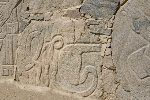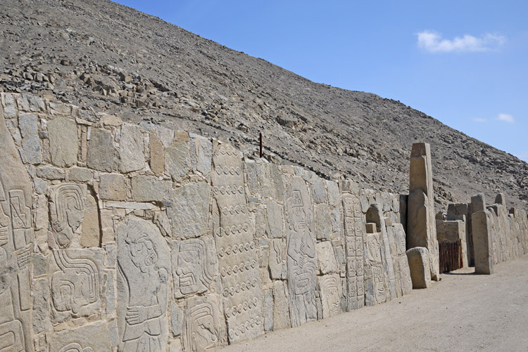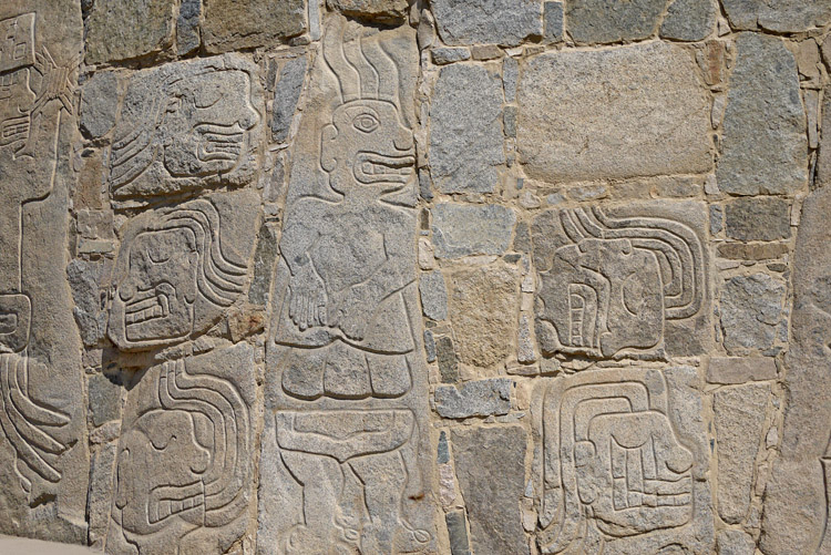The Temple of Sechin is a small one, but had a unique facade built with stone slab engraved with warriors in procession and decapitated bodies.