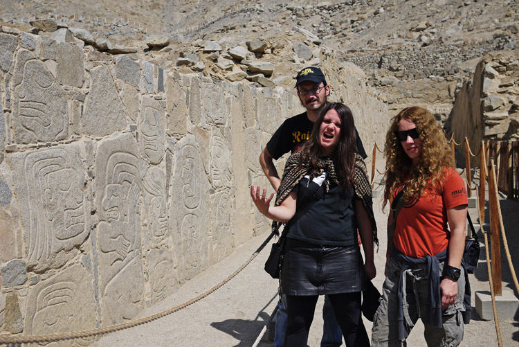 The next morning we went to visit the ruins of the Sechin temple. Built in the archaic period (1600 BC), they were some of the coolest I’ve seen! The site is located in Ancash province of Casma and 5 km from the city of the same name. The weather is hot, dry and with little rainfall annually and the sea is about 10 km away.