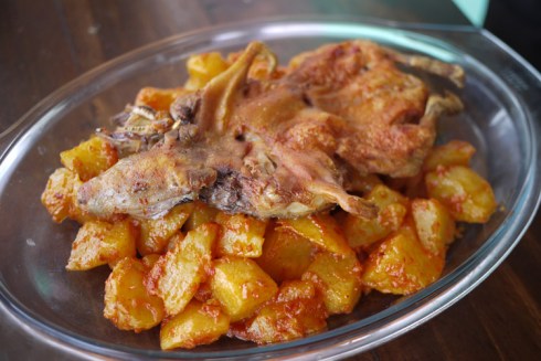 Cuy! Amcash highland-style, with its potatoes. Notice the whiskers, still there! The red sauce is hot peppers mixed with garlic. To be honest, I could barely taste the meat because there was barely any. It was like eating frog legs or something! The taste was similar to the dark parts of chicken.
