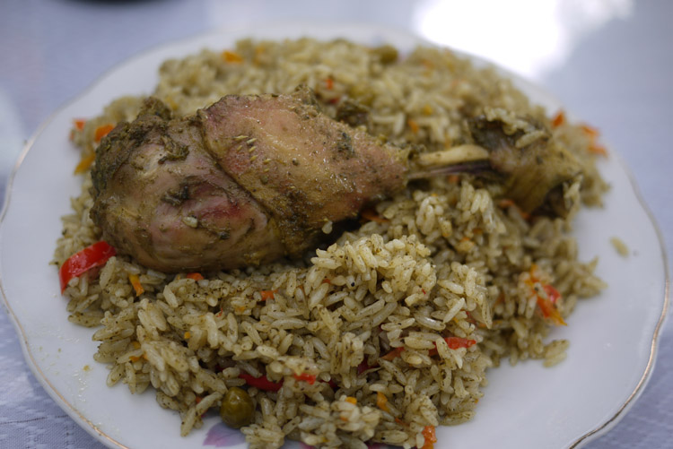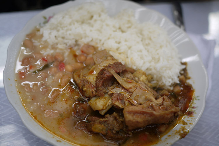 Tania's meal; seco de cordero - a very very tender sheep dish, served with beans and rice