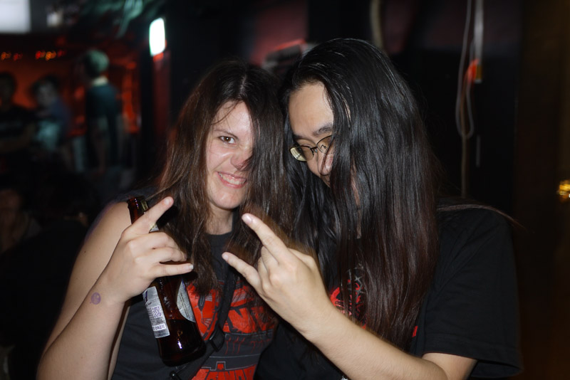 All of us together then headed to the second and last DARGE gig at Badabie club. We could bring our own drinks, cool! First band was SCUMRAID, which was really fast and violent hardcore with a female drummer! They were really good.