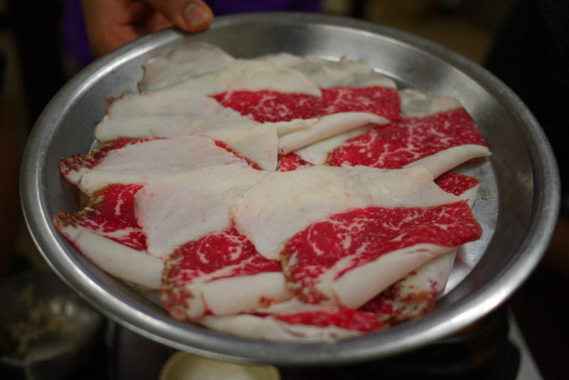 And then, when we were already bursting up, Na Young’s brother brought us some thinly sliced beef brisket called Chadolbagi. It’s a very expensive cut of meat, and it’s very very Korean.