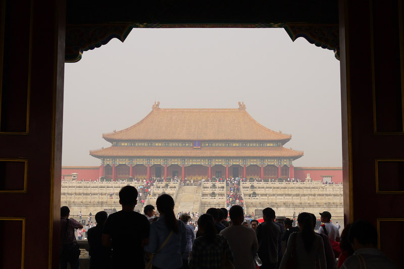 We then headed for the famous Forbidden City (Ming Dynasty – 1368-1644); the very center of Beijing that was forbidden to anyone except the Emperor, the Emperor’s 70-something wives and the chopped-penis/emasculated workers. Of course, high officials had to enter from time to time to talk to the Emperor about war problems or other city-related subjects, but it was quite rare as the emperor didn’t want to see too many people every day.