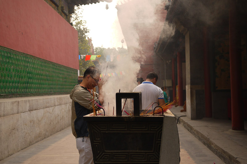 Today we visited Yong He Gong, the Lama Temple. Built during the Qing (Manchu) dynasty (1644 – 1911), this temple was the home of the only official recognized Lama (leader of Tibetan Buddhism/Yellow Sect Lamaism) by the Chinese empire. Or something like that. The place was very colourful and there were many people burning fragrant incense to honour Buddha.