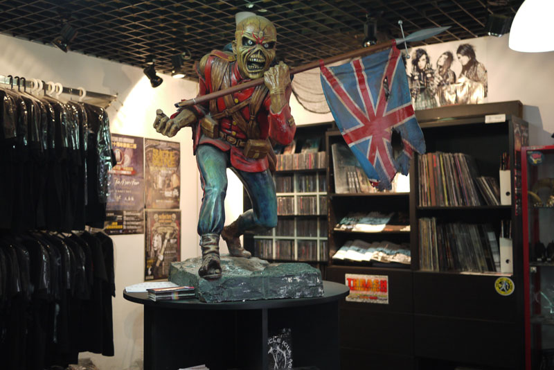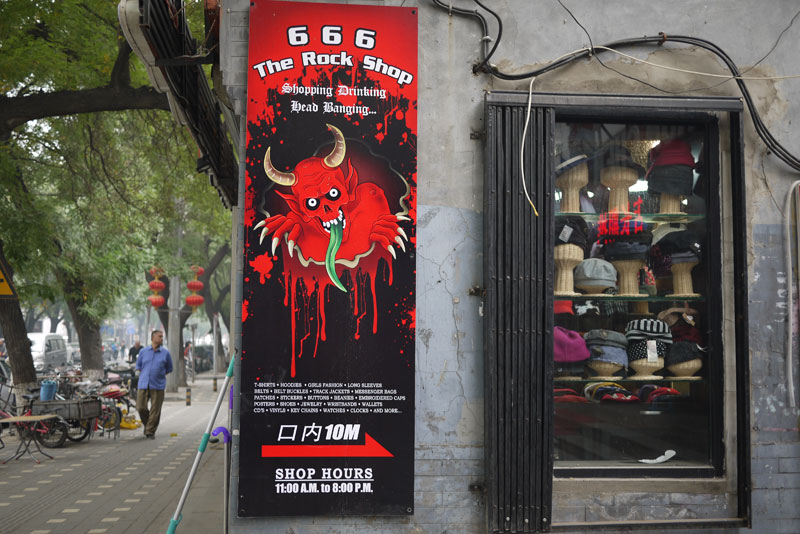 Today, we finally went to visit “666 Rock Shop”, owned by Wang. They are the only shop in China selling metal, and I was surprised to see the insane quality of the records you could find there! From extreme metal to doom, death, NWOBHM and thrash metal – everything is there. The selection is  breath taking – it’s like going through a really killer online distro, but it’s an actual store! Of course, if you compare them to Japanese record shops, 666 Rock Shop is quite small, but its great selection makes up for it. I found some out of print South American CD’s there for really cheap, but had to pass on many other kickass releases (will buy them later on when we travel to Europe). Here are some pictures of this small but kickass shop: