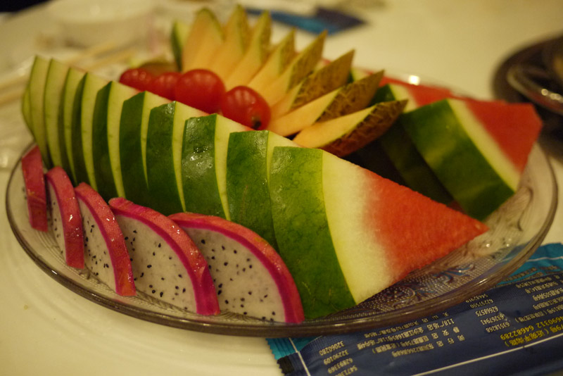 Looks like a great time! The pink/white/black fruit is dragon fruit,