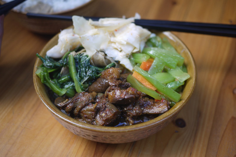 Monk food. You see here spicy fermented cabbage, spinach, carrots, some unknown green veggie and some spicy eggplant (the best part of this plate), served on a bed of rice. It felt so good to eat vegan after weeks and weeks of indulging in heavy meat feasts! I’m sure my vegan friends will approve hehe