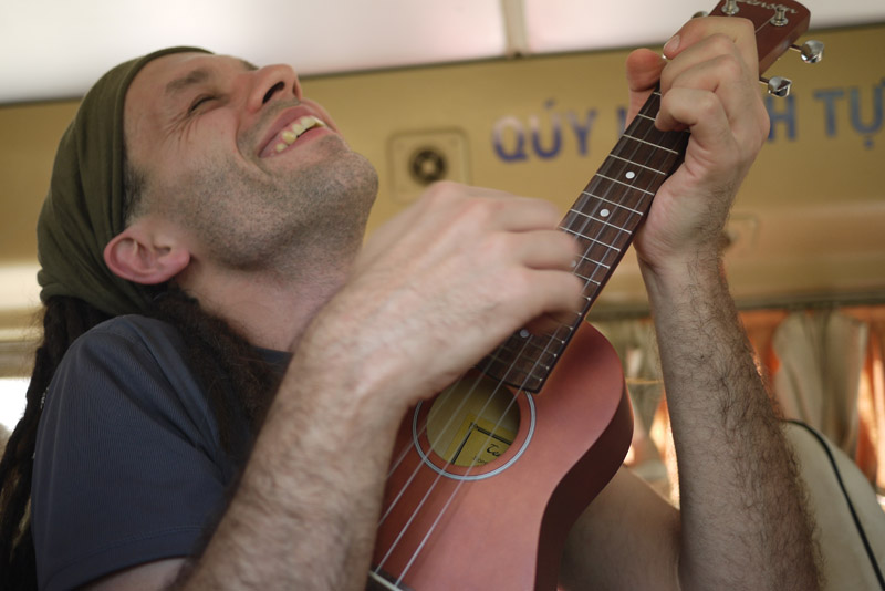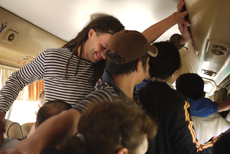 There were about 10 Czechs in the bus, and one of them had a small ukulele guitar. They started singing traditional Czech drinking songs, and took out some alcohol bottles from their bags (first – Vietnamese vodka, and then Lao Lao – 50% Laotian moonshine!) There was a Russian professional singer also, who sang some really creepy traditional Russian songs after drinking some of that vodka. Anyway, it turned out to be quite the party bus!