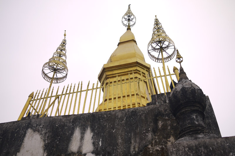 The city has been built beside the Mekong river (an Asian equivalent to India’s Gange or Egypt’s Nile) and is crowned by a tiny mountain called Phu Si. From its 100 meters, you can get a nice view of the whole city – so we climbed it. We couldn’t believe how deserted the streets were! After traveling to so many big cities, it was refreshing to see something like this! We couldn’t even hear a single car honk…