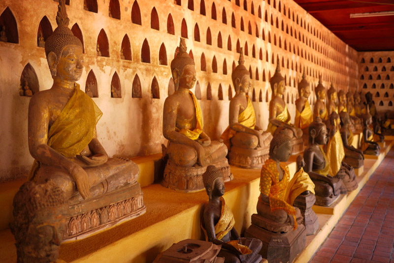 Another one we did was Haw Pha Kaeo, which was first built in 1595 to hold the magical emerald Buddha (who got taken away by the Siamese in the 1700’s). The temple got destroyed, and got rebuilt by the French with a “Bangkok” style architecture. The inside was actually some sort of “holy art” museum, but it was quite ok… the best was the sculptures as well as the Buddha statues: