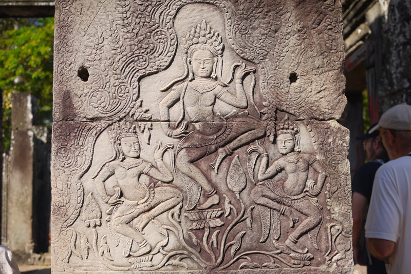 Bayon is one of the biggest and most important temples in the area. It was in fact a state-temple, and is easily recognizable by its 54 towers sporting 217 carved faces. It is also well known for its bas-relief carvings, which has everything from dancing nymphs to cockfights!