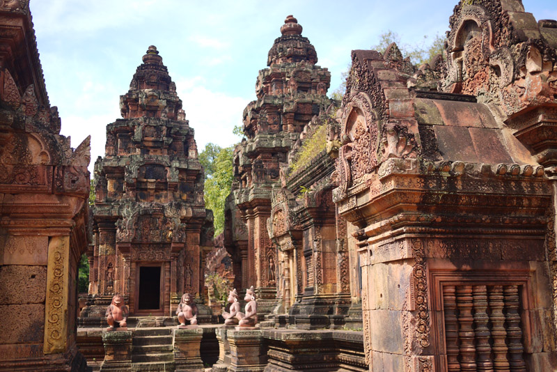 Banteay Srey, meaning “citadel of the women”, has to be the most beautifully decorated temple I’ve seen. It’s more than a thousand years old, but it has incredible carvings and engravings in pink sandstone that have been miraculously preserved! Every carving is symbolic, and some tell some Hindu stories…
