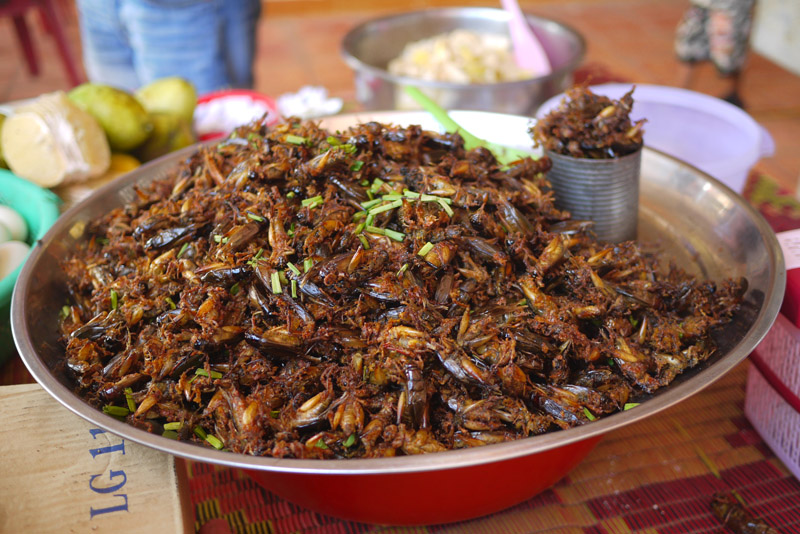 And to my mother’s disgust (haha, sorry mom!), I tried a local specialty… fried tarantula! These babies, who are the size of a human palm and hairy as hell,  are bred in holes or foraged for in nearby forestland, marinated in chili and garlic then fried in oil. It is not clear how this practice started, but some have suggested that the population might have started eating spiders out of desperation during the years of Khmer Rouge rule, when food was in short supply. I was kind of put off at first, but tried eating its legs and found that they were good and crunchy! Kind of like crunchy chicken wings, you know? You don’t eat the body though, as it is either full of eggs or excrement.
