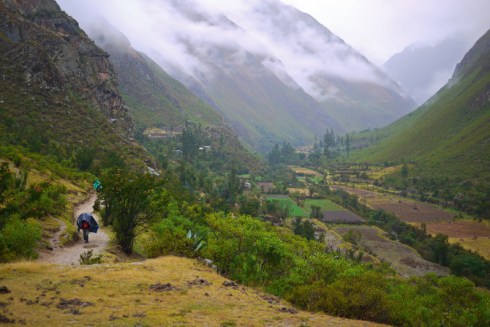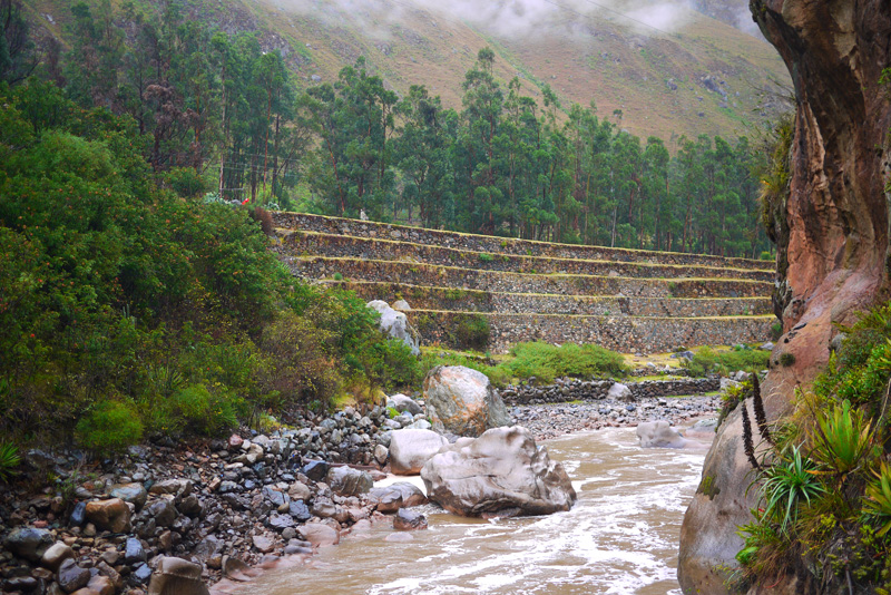 François on the left, with magnificient Inca terraces on the right. Some of these terraces are still in use today, giving the locals better crops than usual at such high altitude!