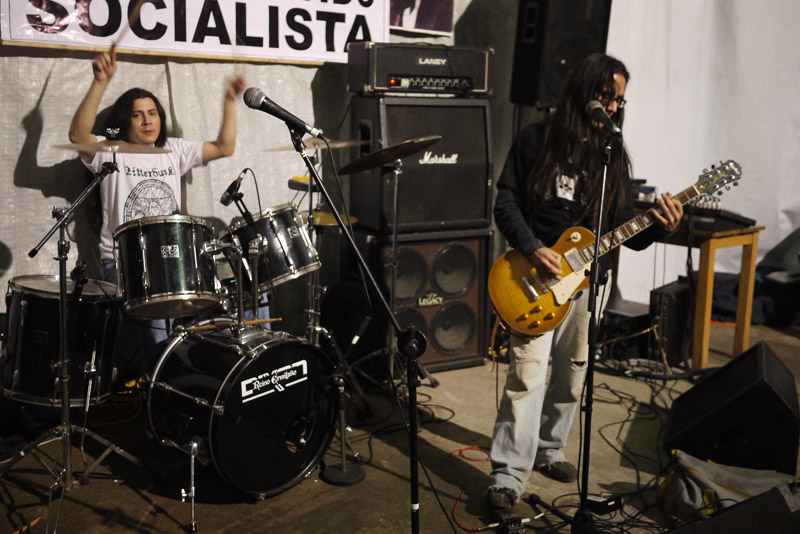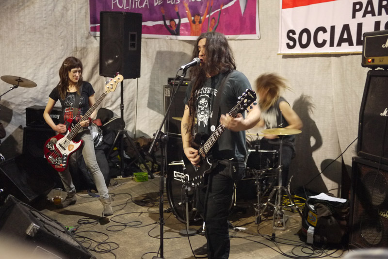 All of us together then headed to the second and last DARGE gig at Badabie club. We could bring our own drinks, cool! First band was SCUMRAID, which was really fast and violent hardcore with a female drummer! They were really good.