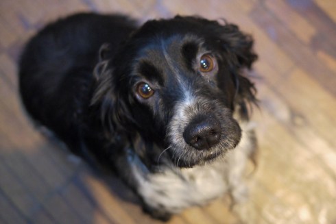François with Blackie, a friendly dog which followed us during our walks in Copacabana
