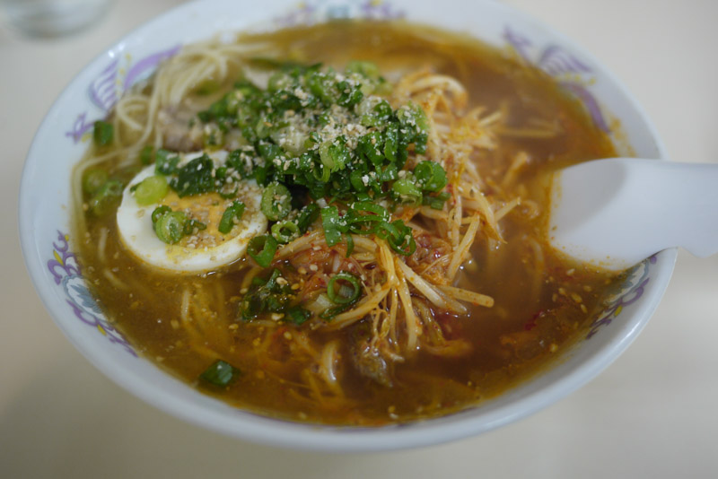Anyway, on the first night, we decided to treat ourselves to a nice hot bowl of ramen, the last one of our Japan trip. I got one that was kimchi (Korean spicy pickled cabbage) flavoured – since we are going to South Korea next. It was delicious – and hot as hell!