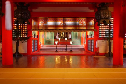 In the past, common people were not allowed to walk on Miyajima island, so to allow pilgrims to approach, the shrine was built like a pier over the water; so it would appear to float separate from the land. It therefore existed in a liminal state between the sacred and the profane.