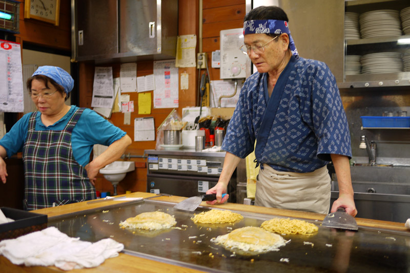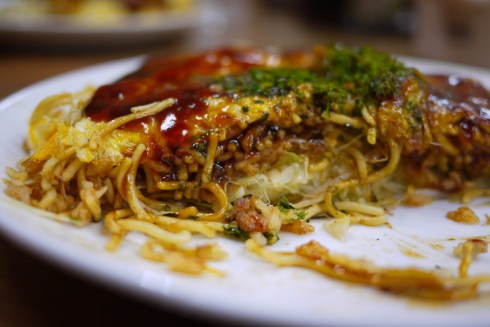 After our big day, we needed a nice satisfying dinner, so we had Hiroshima-style okonomiyaki. This time, instead of putting all the ingredients together to make some kind of pancake, it was all layered so you could taste everything separately. To be honest, I really loved the Osaka-style okonomiyaki, but my favorite was this one! It was so tasty… oh man, I am craving it this very moment. Argh!!!!