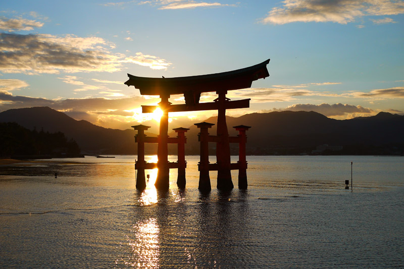 The island is home to the Itsukushima Shrine, a UNESCO World Heritage Site. The landmark here is a gigantic ancient otorii, or dramatic gate which is classified as one of the Three Scenic Views of Japan.