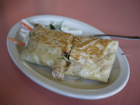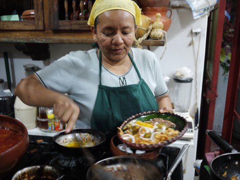 During the week, I made some Enchiladas at our hostel, with a totally typical sauce called “Mole Negro”, which is basically chocolate (non sugary), chiles, seasonings and oil. I’m sure you guys can find that at any latino groceries. The taste is very exotic and is not that good at first, but becomes addictive. For the meal, I used 1 chicken breast, 2 corn tortillas (put some water on them and cook them slightly on the pan to make then softer), some cheese, as well as 1/3rd of a Mole package. The results? See for yourself: